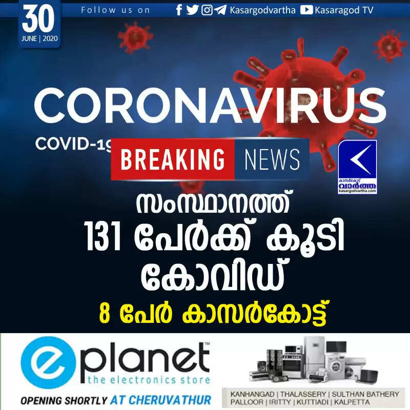 സംസ്ഥാനത്ത് 131 പേര്ക്ക് കൂടി കോവിഡ്; 8 പേര് കാസര്കോട്ട്