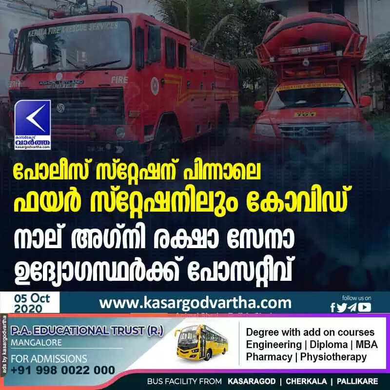 Keywords: Kasaragod, Kerala, News, COVID-19, Case, Fire force, Trending, Covid at the fire station