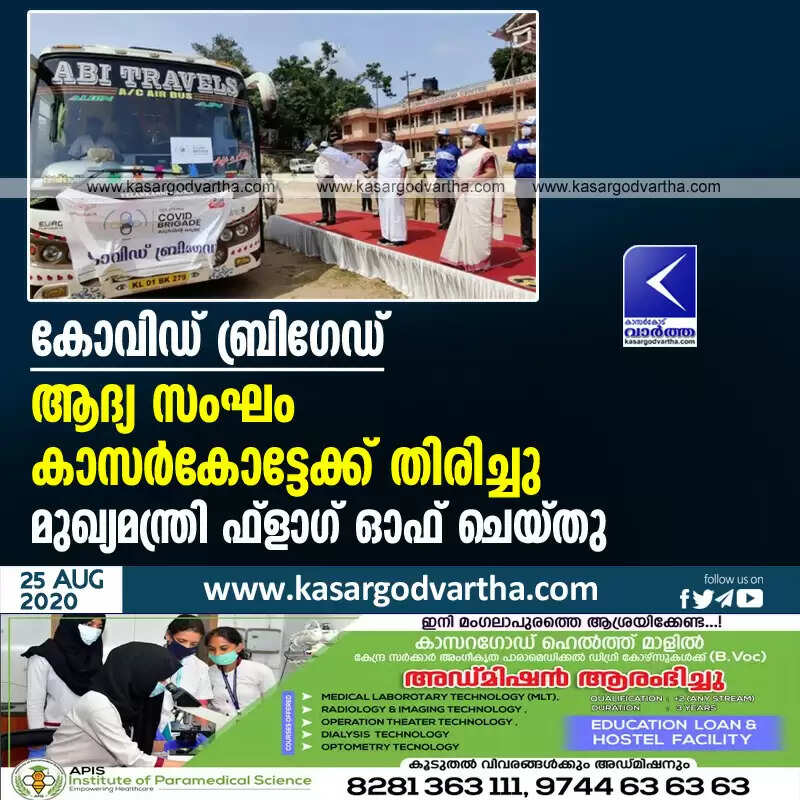 Keywords:  Thiruvananthapuram, Kasaragod, Kerala, News, COVID-19, Pinarayi-Vijayan, Flag-off, Trending, COVID Brigade: First Team Returns to Kasargod; Chief Minister flagged off