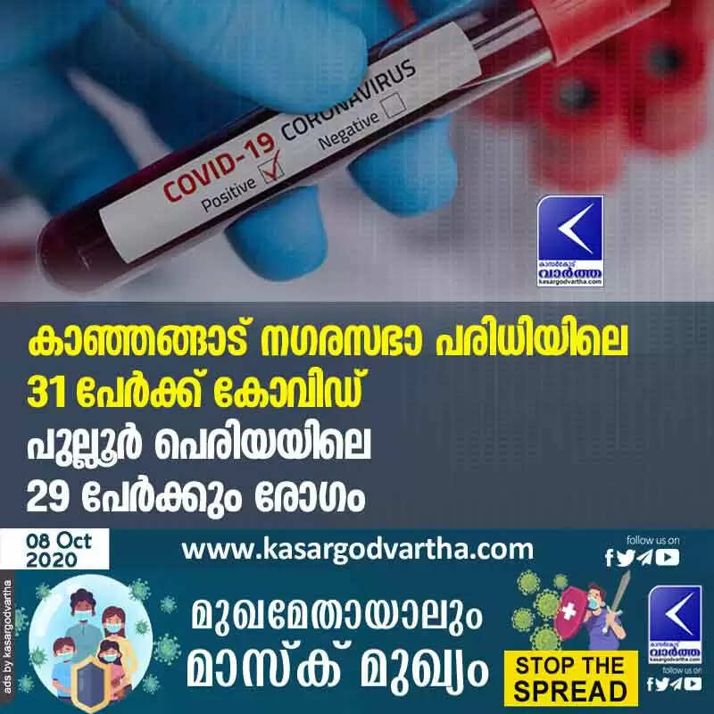 Keywords: Kasaragod, Kerala, News, COVID-19, Kanhangad, Municipality, Pullur-periya, Trending, COVID for 31 persons in Kanhangad municipal limits; 29in Pullur Periya