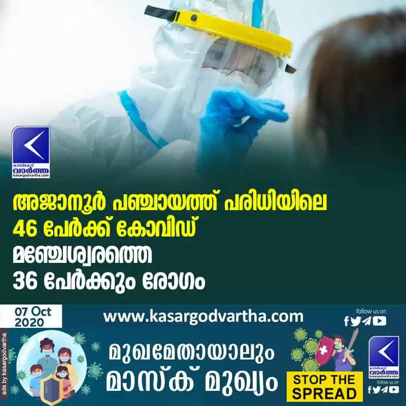 അജാനൂര്‍ പഞ്ചായത്ത് പരിധിയിലെ 46 പേർക്ക് കോവിഡ്; മഞ്ചേശ്വരത്തെ 36 പേർക്കും രോഗം