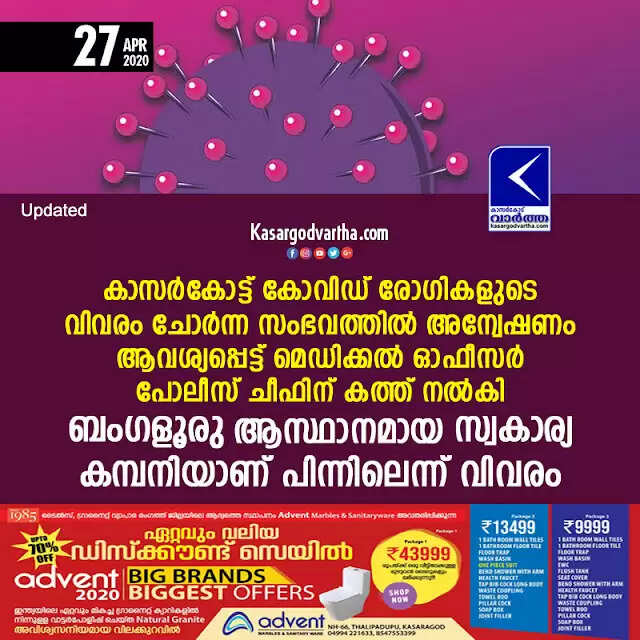 Keywords: Kasaragod, Kerala, news, Top-Headlines, Police, Trending, COVID-19, Covid patients' information leaked; investigation started