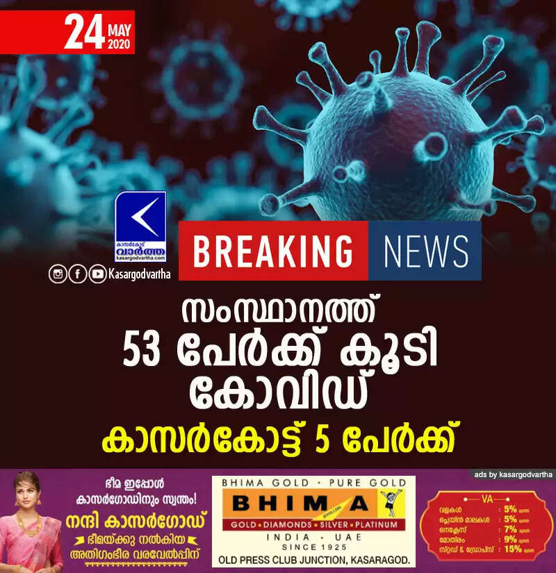 സംസ്ഥാനത്ത് 53 പേര്ക്ക് കൂടി കോവിഡ്; കാസര്കോട്ട് 5 പേര്ക്ക്