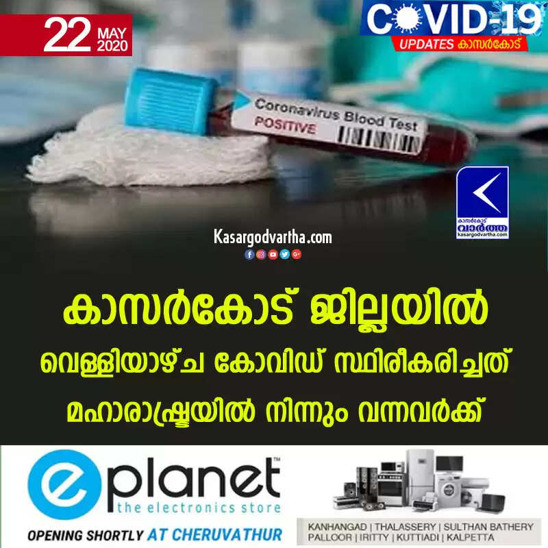 കാസര്കോട് ജില്ലയില് വെള്ളിയാഴ്ച കോവിഡ് സ്ഥിരീകരിച്ചത് മഹാരാഷ്ട്രയില് നിന്നും വന്നവര്ക്ക്