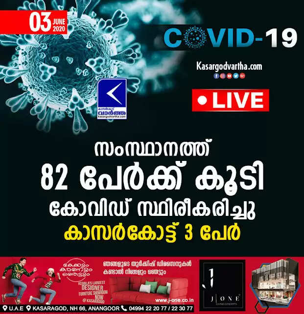 സംസ്ഥാനത്ത് 82 പേര്ക്ക് കൂടി കോവിഡ് സ്ഥിരീകരിച്ചു; കാസര്കോട്ട് 3 പേര്
