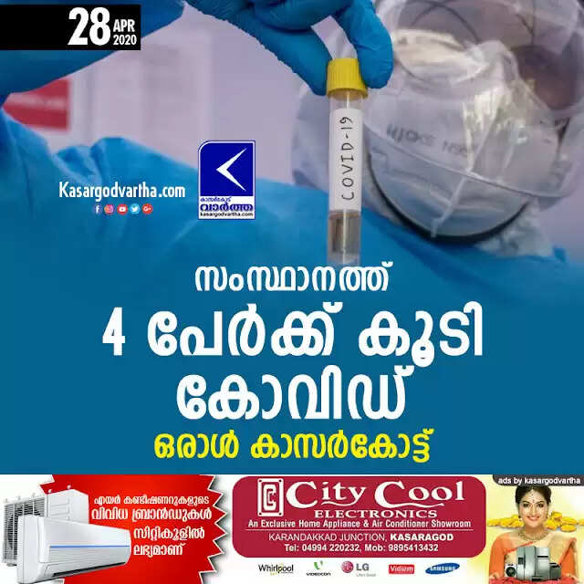 സംസ്ഥാനത്ത് 4 പേര്ക്ക് കൂടി കോവിഡ്; ഒരാള് കാസര്കോട്ട്