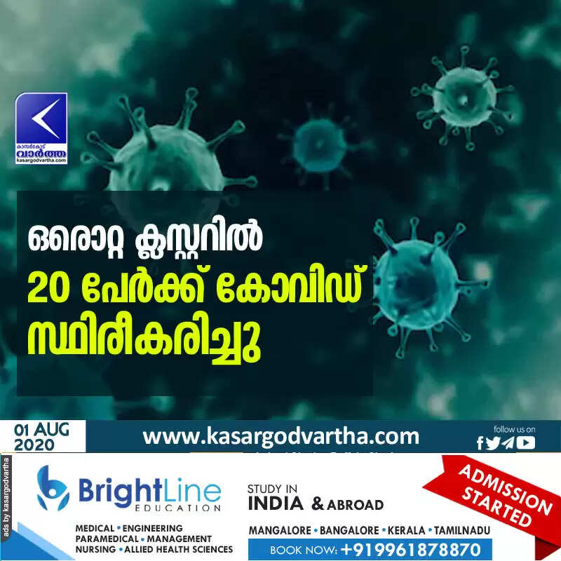 ഒരൊറ്റ ക്ലസ്റ്ററിൽ 20 പേർക്ക് കോവിഡ് സ്ഥിരീകരിച്ചു