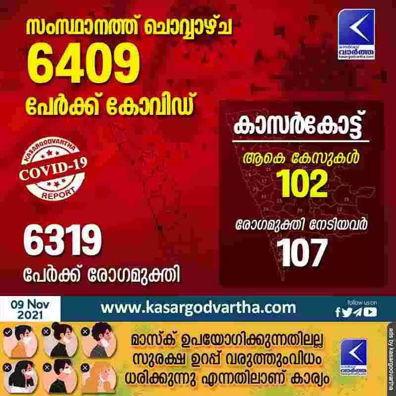 സംസ്ഥാനത്ത് ചൊവ്വാഴ്ച 6409 പേർക്ക് കോവിഡ്; കാസർകോട് 102 പേർ