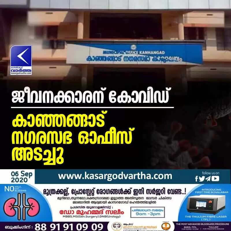 Keywords: Kasaragod, Kanhangad, Kerala, News, COVID-19, Employees, Office, Trending, COVID to Employee; Kanhangad Municipal Corporation office closed