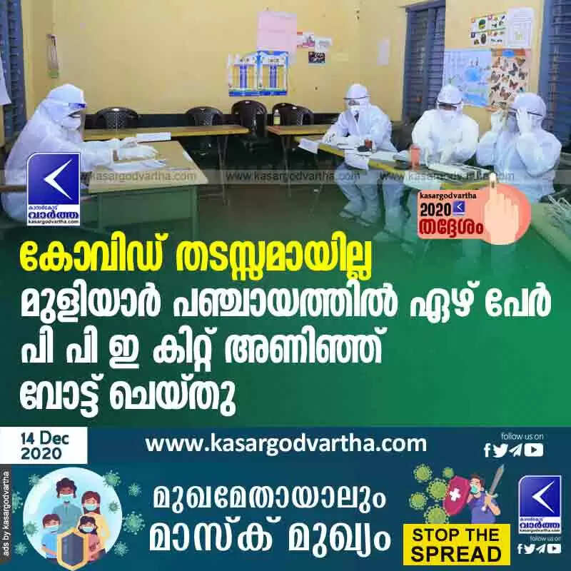 കോവിഡ് തടസ്സമായില്ല; മുളിയാര് പഞ്ചായത്തില് ഏഴ് പേര് പി പി ഇ കിറ്റ് അണിഞ്ഞ് വോട് ചെയ്തു