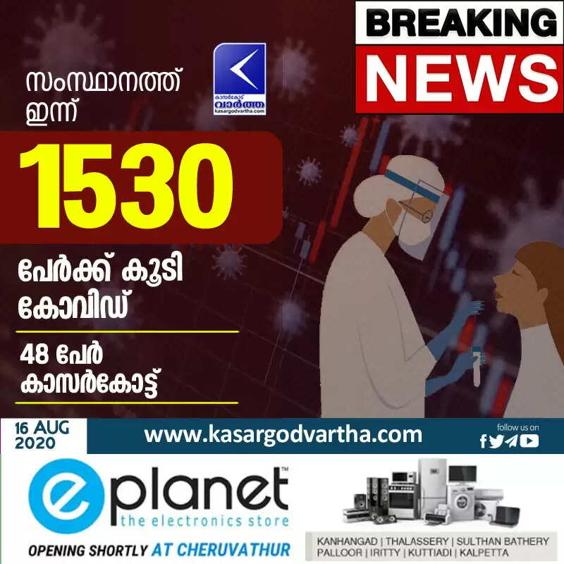 സംസ്ഥാനത്ത് ഞായറാഴ്ച 1530 പേര്ക്ക് കോവിഡ് ; കാസര്കോട്ട് 48 പേര്
