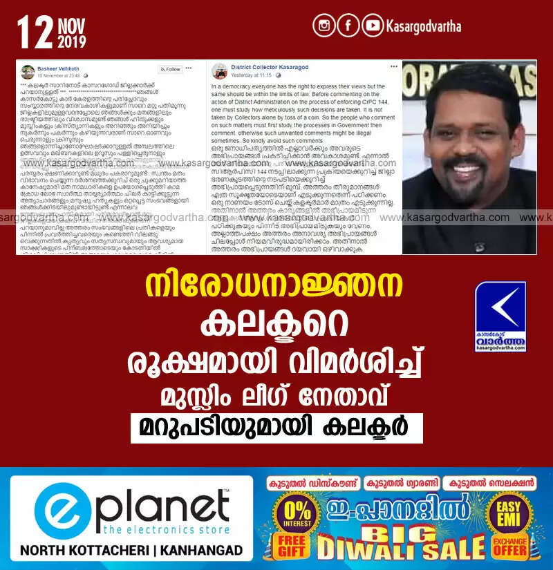 നിരോധനാജ്ഞ: കലക്ടറെ രൂക്ഷമായി വിമര്ശിച്ച് മുസ്ലിം ലീഗ് നേതാവ്; മറുപടിയുമായി കലക്ടര്