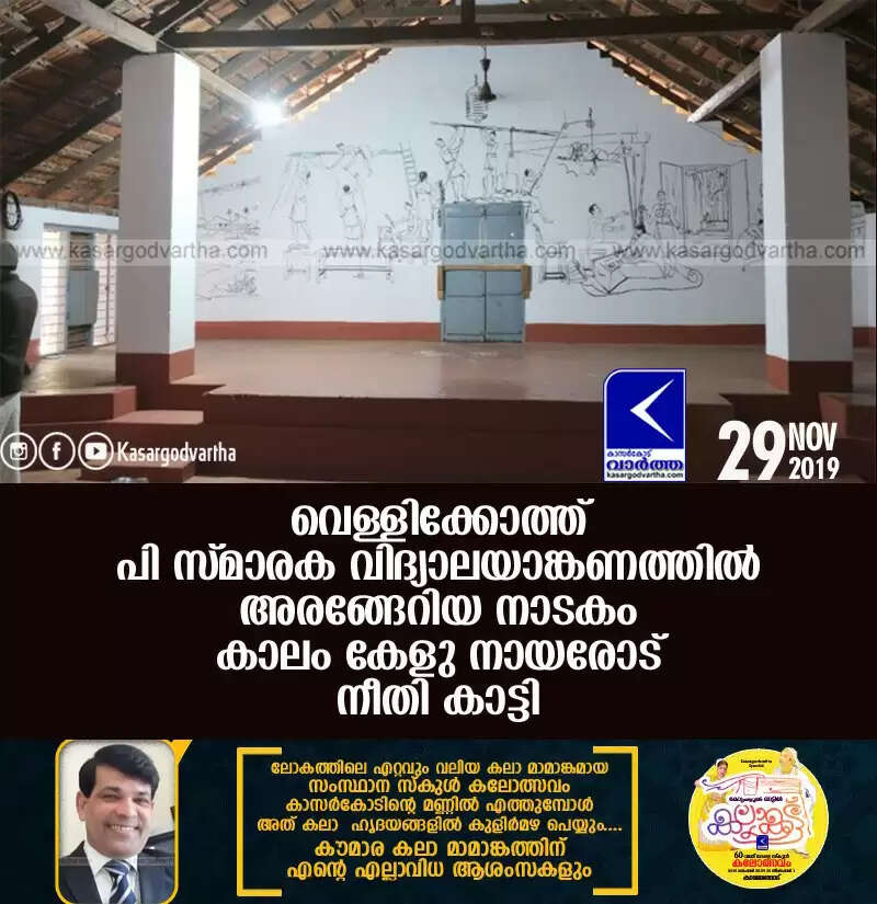 വെള്ളിക്കോത്ത് പി സ്മാരക വിദ്യാലയാങ്കണത്തില് അരങ്ങേറിയ നാടകം കാലം കേളു നായരോട് നീതി കാട്ടി