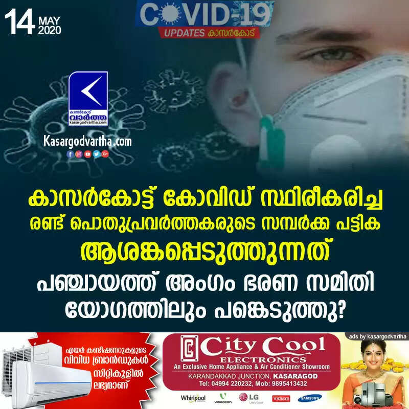 കാസര്കോട്ട് കോവിഡ് സ്ഥിരീകരിച്ച രണ്ട് പൊതുപ്രവര്ത്തകരുടെ സമ്പര്ക്ക പട്ടിക ആശങ്കപ്പെടുത്തുന്നത്; പഞ്ചായത്ത് അംഗം ഭരണ സമിതി യോഗത്തിലും പങ്കെടുത്തു?