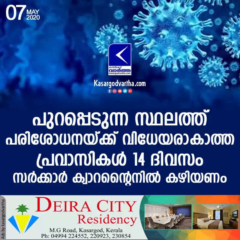 Keywords: Kasaragod, Kerala, News, COVID-19, Test, Top-Headlines, Trending, If Expats not tested covid, must quarantine 14 days in Govt. centers