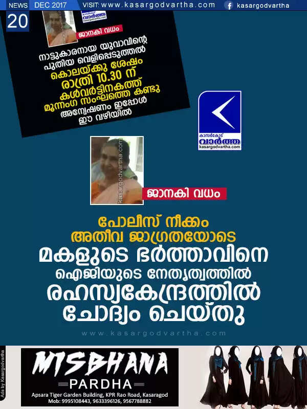 Keywords: Kasaragod, Kerala, News, Trending, Murder-case, Crime, Police, Investigation, Custody, Natives, Janaki murder; Son in law in police custody.