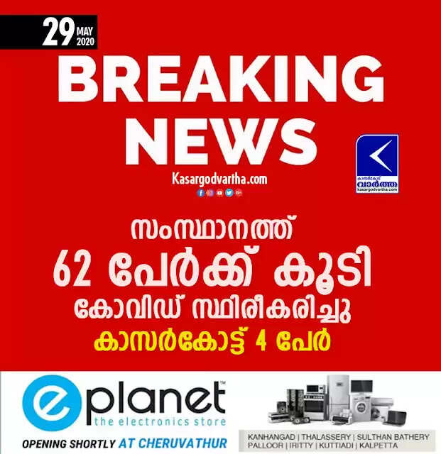 സംസ്ഥാനത്ത് 62 പേര്ക്ക് കൂടി കോവിഡ് സ്ഥിരീകരിച്ചു; കാസര്കോട്ട് 4 പേര്