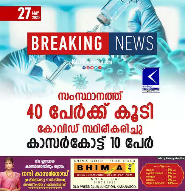 സംസ്ഥാനത്ത് 40 പേര്ക്ക് കൂടി കോവിഡ് സ്ഥിരീകരിച്ചു; കാസര്കോട്ട് 10 പേര്