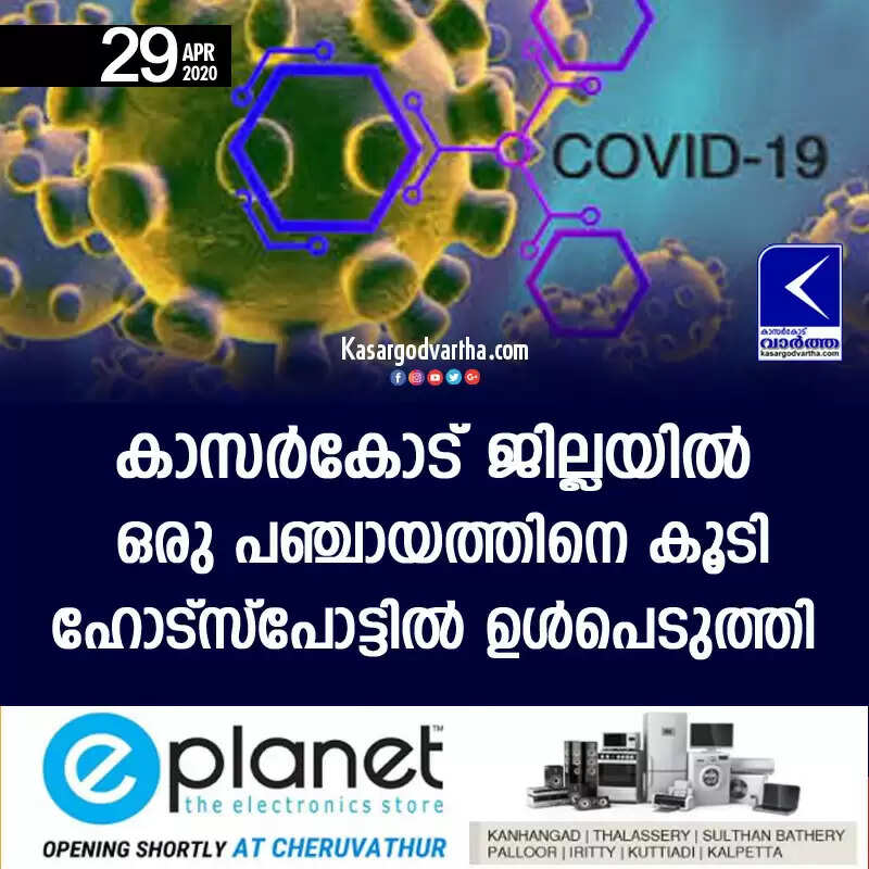 കാസര്കോട് ജില്ലയില് ഒരു പഞ്ചായത്തിനെ കൂടി ഹോട്സ്പോട്ടില് ഉള്പെടുത്തി