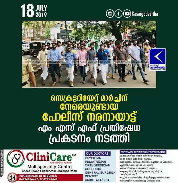 Keywords: Kasaragod, Kerala, news, Police, MSF, Top-Headlines, Trending, Police attack; MSF Protested