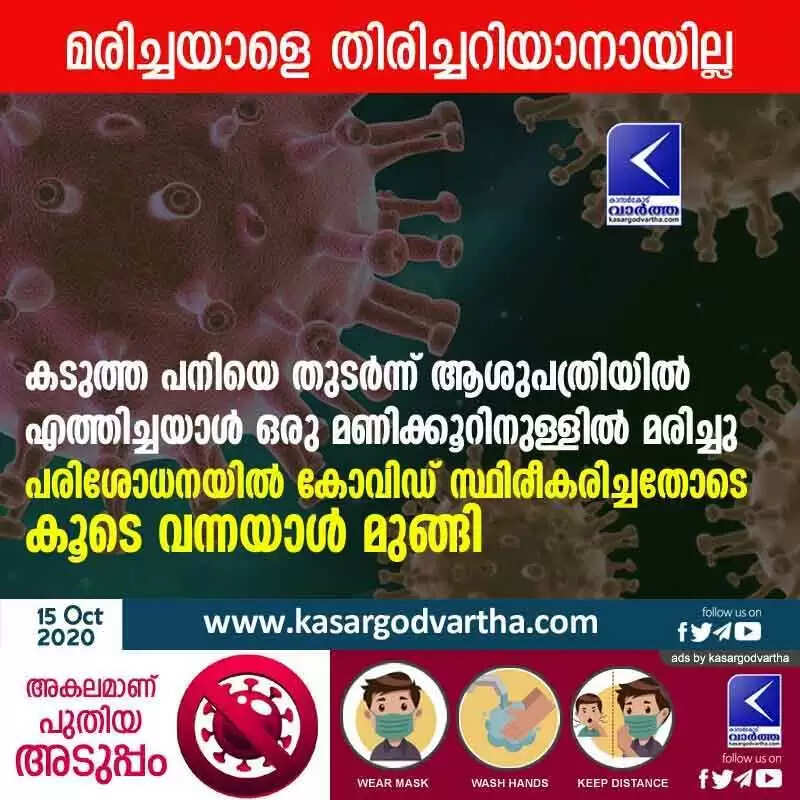 Keywords: Kasaragod, Kerala, News, Kanhangad, Hospital, COVID-19, Death, Fever, Trending, The man, who was rushed to hospital with a high fever, and COVID died within an hour; The deceased could not be identified