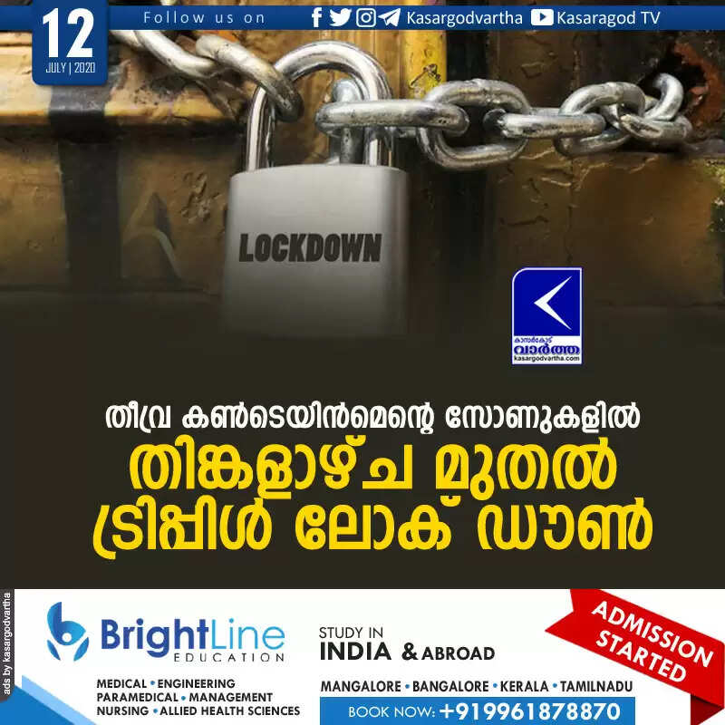 Keywords: kasaragod, Kerala, news, COVID-19, Trending, District, Containment Zones, Triple Lockdown on Mondays in Extreme Containment Zones