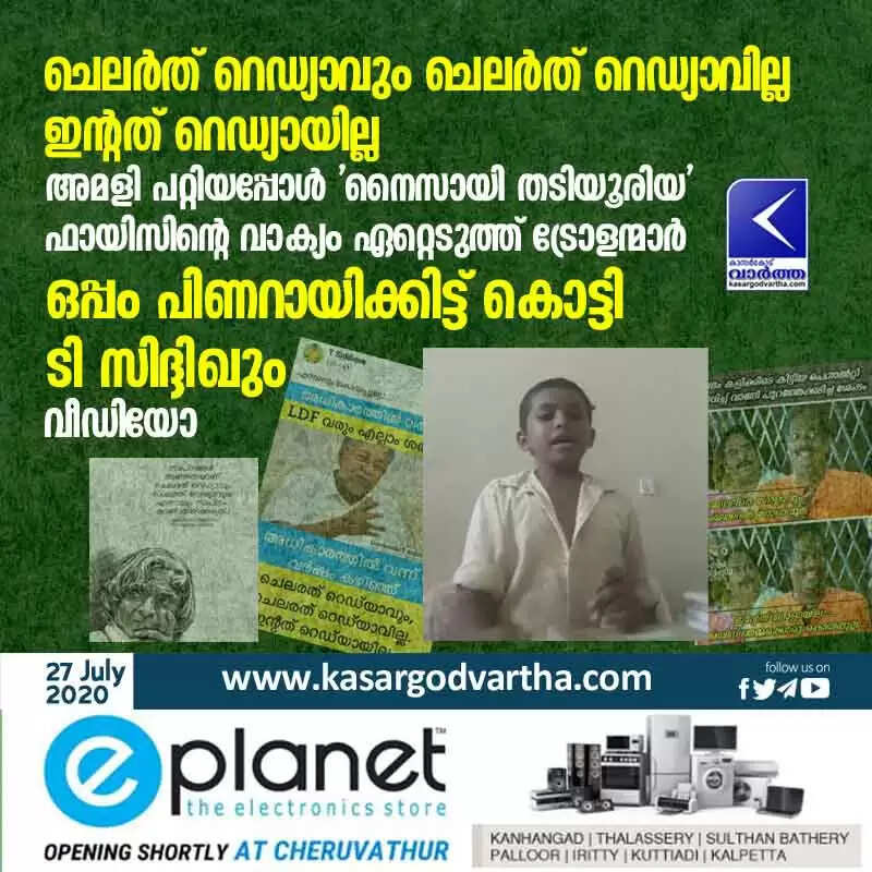 ചെലർത് റെഡ്യാവും ചെലർത് റെഡ്യാവില്ല, ഇന്റത് റെഡ്യായില്ല; അമളി പറ്റിയപ്പോൾ 'നൈസായി തടിയൂരിയ' ഫായിസിന്റെ വാക്യം ഏറ്റെടുത്ത് ട്രോളന്മാർ; ഒപ്പം പിണറായിക്കിട്ട് കൊട്ടി ടി സിദ്ദിഖും; വീഡിയോ