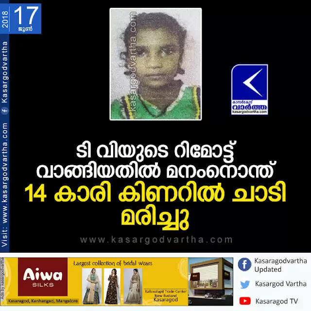 ടി വിയുടെ റിമോട്ട് വാങ്ങിയതില് മനംനൊന്ത് 14 കാരി കിണറില് ചാടി മരിച്ചു