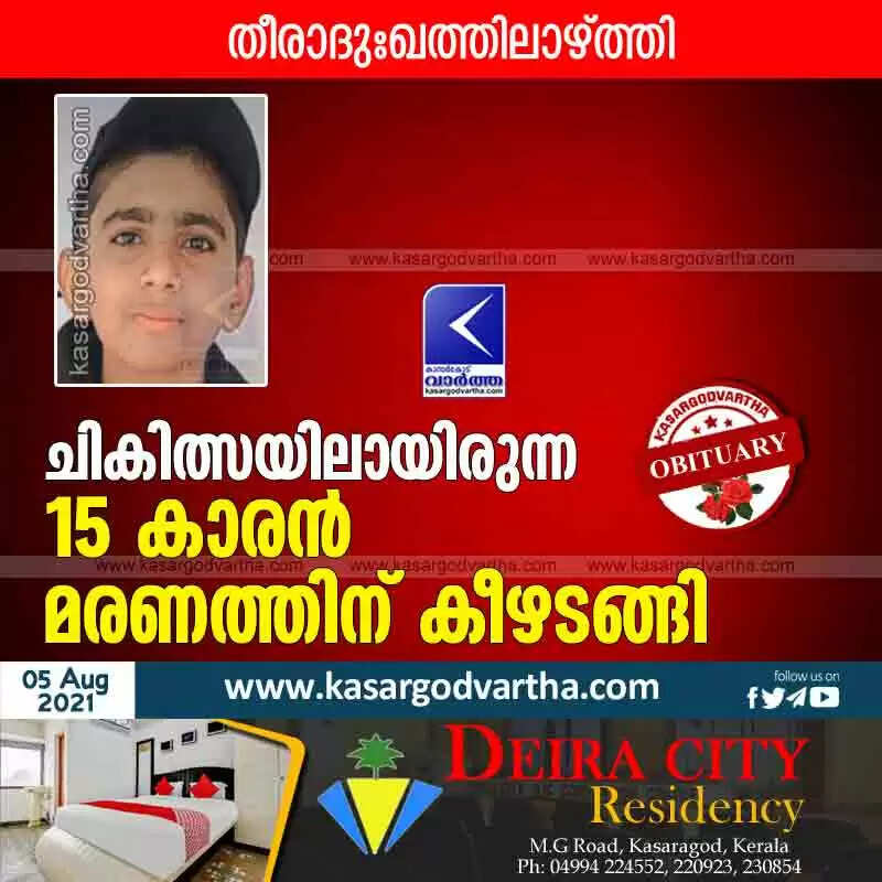 ചികിത്സയിലായിരുന്ന 15 കാരൻ മരണത്തിന് കീഴടങ്ങി