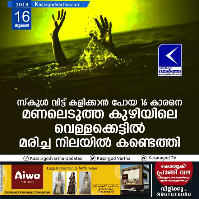 Keywords:  Trikaripur, Kasaragod, Obituary, 16 years old boy found dead in river