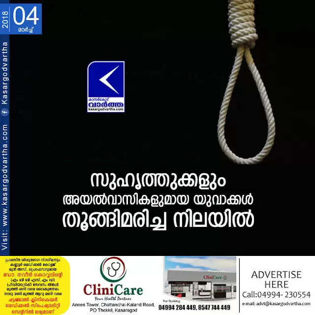 Keywords: Kerala, Kanhangad, kasaragod, news, Death, Obituary, Hanged, cheemeni, 2 friends found dead hanged