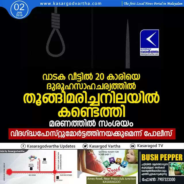 വാടക വീട്ടില് 20 കാരിയെ ദുരൂഹസാഹചര്യത്തില് തൂങ്ങിമരിച്ചനിലയില് കണ്ടെത്തി; മരണത്തില് സംശയം, വിദഗ്ദ്ധപോസ്റ്റുമോര്ട്ടത്തിനയക്കുമെന്ന് പോലീസ്