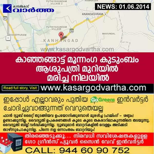 കാഞ്ഞങ്ങാട്ട് മൂന്നംഗ കുടുംബം ആശുപത്രി മുറിയില് മരിച്ച നിലയില്