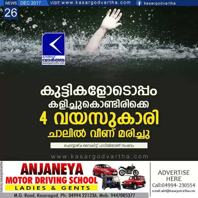 കുട്ടികളോടൊപ്പം കളിച്ചുകൊണ്ടിരിക്കെ 4 വയസുകാരി ചാലില് വീണ് മരിച്ചു