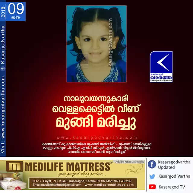 Keywords: Kerala, Kanhangad, news, Death, Drown, Child, kasaragod, Obituary, Accident, 4 year old girl drowned to death