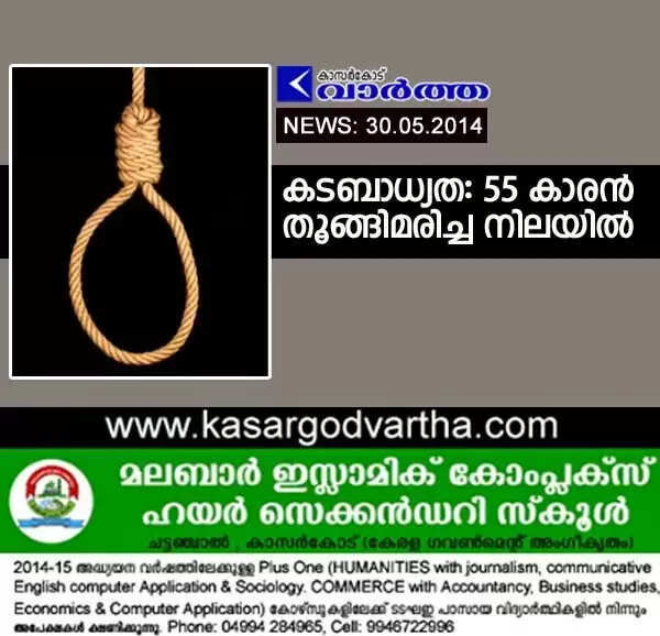 കടബാധ്യത: 55 കാരന് തൂങ്ങിമരിച്ച നിലയില്