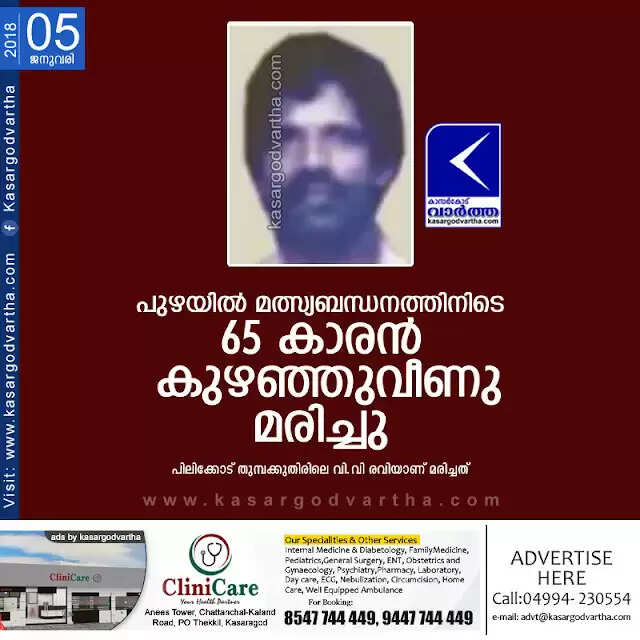 Keywords: Cheruvathur, Kasaragod, Kerala, News, Death, Obituary, 65 year dies while fishing.
