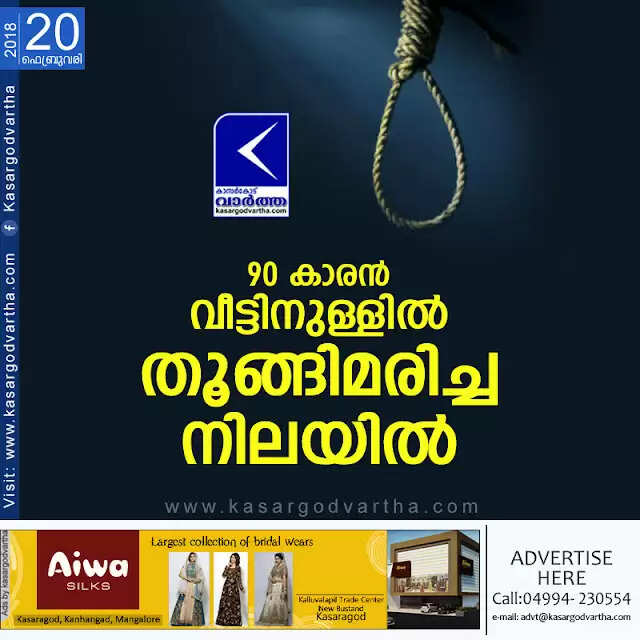 Keywords: Kasaragod, Kerala, news, Hanged, Death, Obituary, suicide, Police, 90 year old found dead hanged