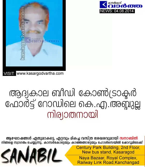 ആദ്യകാല ബീഡി കോണ്ട്രാക്ടര് ഫോര്ട്ട് റോഡിലെ കെ.എ.അബ്ദുല്ല നിര്യാതനായി