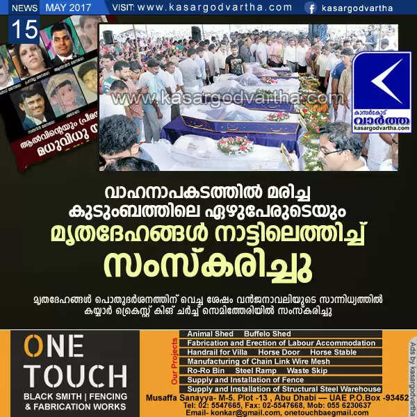 വാഹനാപകടത്തില് മരിച്ച കുടുംബത്തിലെ ഏഴുപേരുടെയും മൃതദേഹങ്ങള് നാട്ടിലെത്തിച്ച് സംസ്കരിച്ചു