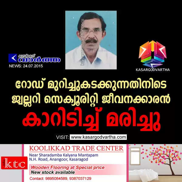 Keywords: Kasaragod, Accident, Injured, Obituary, Kerala, Security, Accident: Jewelry security personnel died, Viswan, Advertisement Koolikkad Trade Center.