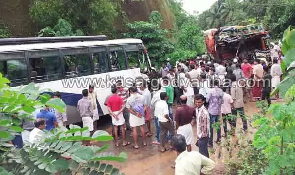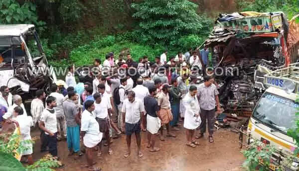 ബേവിഞ്ച വളവില് ബസും ലോറിയും കൂട്ടിമുട്ടി ലോറി ഡ്രൈവര് മരിച്ചു; നിരവധിപേര്ക്ക് പരിക്ക്