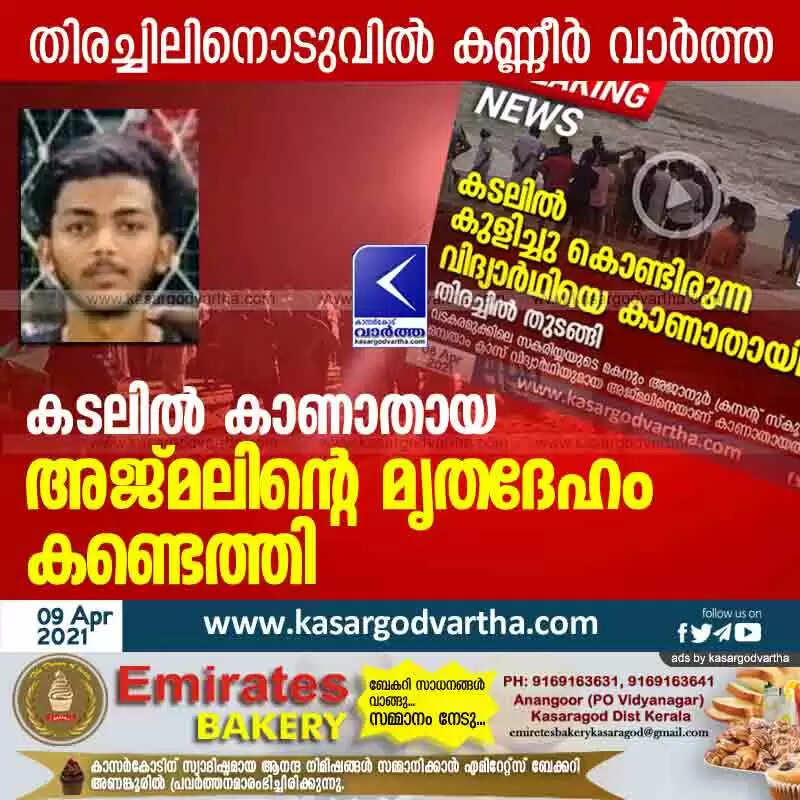 Keywords: Kasaragod, Kanhangad, Kerala, News, Top-Headlines, Death, Dead body, Sea, Obituary, Missing, Ajmal's body found at sea.