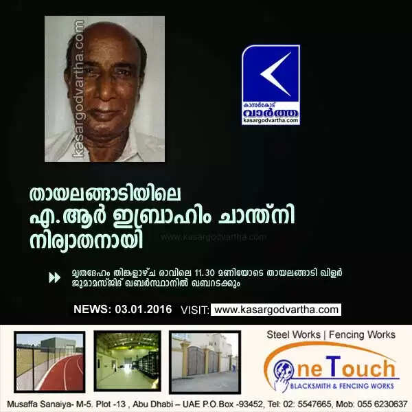 Keywords : Kasaragod, Thayalangadi, Obituary, A.R Ibrahim Chandni, Anangoor,A.R Ibrahim Thayalangadi passes away.