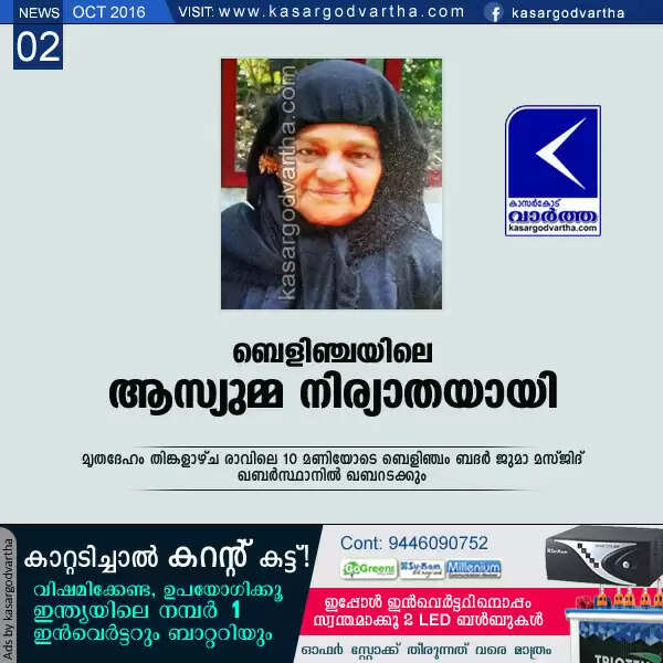 ബെളിഞ്ചയിലെ ആസ്യുമ്മ നിര്യാതയായി