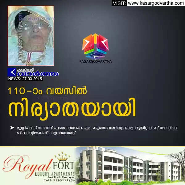 Keywords:  Kasaragod, Kerala, Trikaripur, died, Obituary, Muslim league Leader, K.M. Kunhahammad, Beefathima, Ayittikkadavu Road Beefathima passes away.