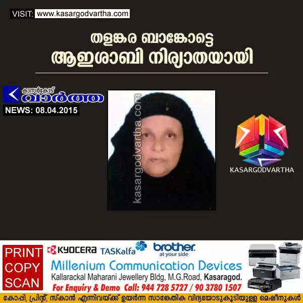 Keywords : Kasaragod, Kerala, Thalangara, Obituary, Choori, Ayshabi, Bangod.
