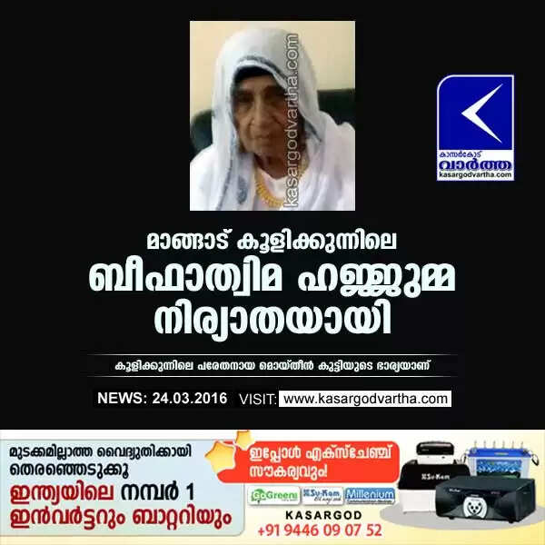 മാങ്ങാട് കൂളിക്കുന്നിലെ ബീഫാത്വിമ ഹജ്ജുമ്മ നിര്യാതയായി