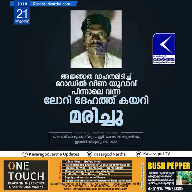 Keywords : Udma, Pallikara, Accident, Death, Obituary, News, Lorry, Kasaragod, Kottikulam.