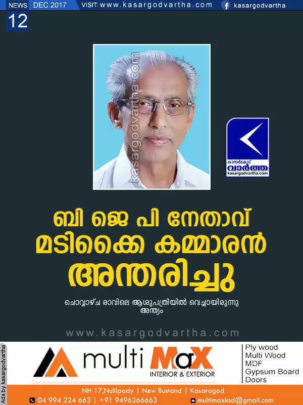 Keywords:  Kasaragod, Kerala, news, Death, Obituary, Top-Headlines, BJP Leader Madikai Kammaran passes away